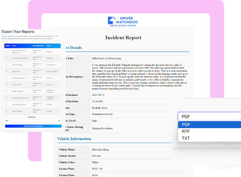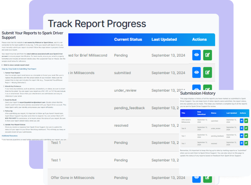 Driver Watchdog is a third-party platform created by Spark drivers to help combat abuse on the Spark delivery platform. Our site allows you to log, track, and manage reports of unfair practices, such as bot usage or offer manipulation. You can export your reports in a format that can be emailed to Spark support, helping to protect your earnings and maintain fairness.
